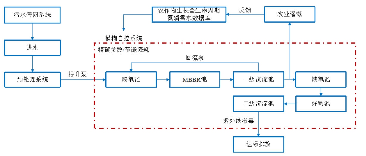 MBBR雙標(biāo)準(zhǔn)低能耗分散式一體化污水處理工藝流程圖
