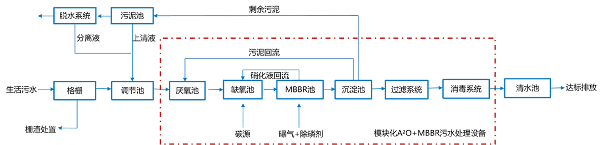 A2/O+MBBR一體化分散式污水處理工藝流程圖