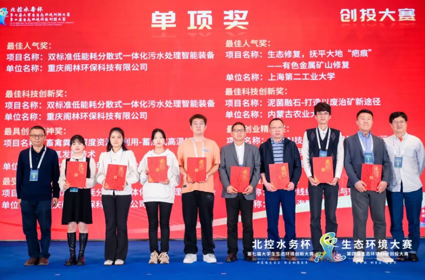 2024年11月2日,北控水務杯第四屆生態環境科技創投大賽總決賽在重慶圓滿收官。我司以《雙標準低能耗分散式一體化污水處理智能裝備》項目參賽,榮獲冠軍、最佳人氣獎、最佳科技創新獎、最受投資人青睞獎四項獎勵!