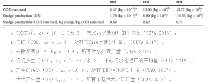 表2 2015年、2016年和2017年中國年度市政污水處理COD去除量和污泥產量以及污泥的觀測產率系數